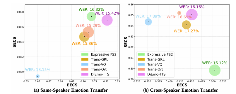 - Speaker, emotion similarity 측면에서도 DiEmo-TTS가 가장 뛰어남
