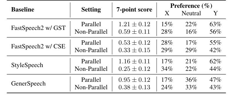 - Comparisons : FastSpeech2, StyleSpeech, GenerSpeech