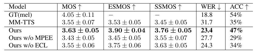 - Text prompt에 대해서도 MPE-TTS는 뛰어난 성능을 보임
