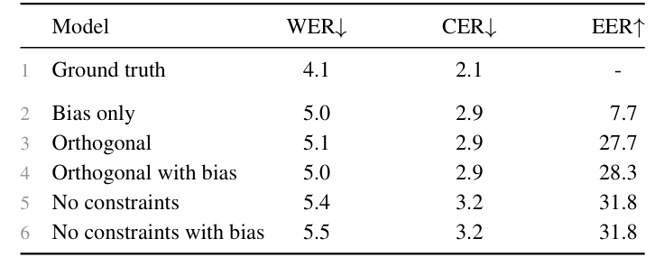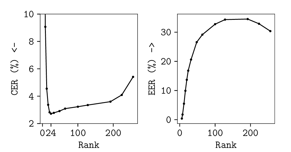 - 이는 content information이 low dimension의 subspace에 존재한다는 것을 의미함 - EER의 경우 $100$ 이상의 large rank가 필요함