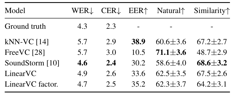 - Comparisons : kNN-VC, FreeVC, SoundStorm