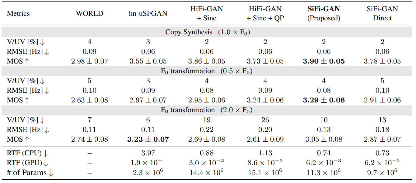 - Comparisons : WORLD, hn-uSFGAN, HiFi-GAN
