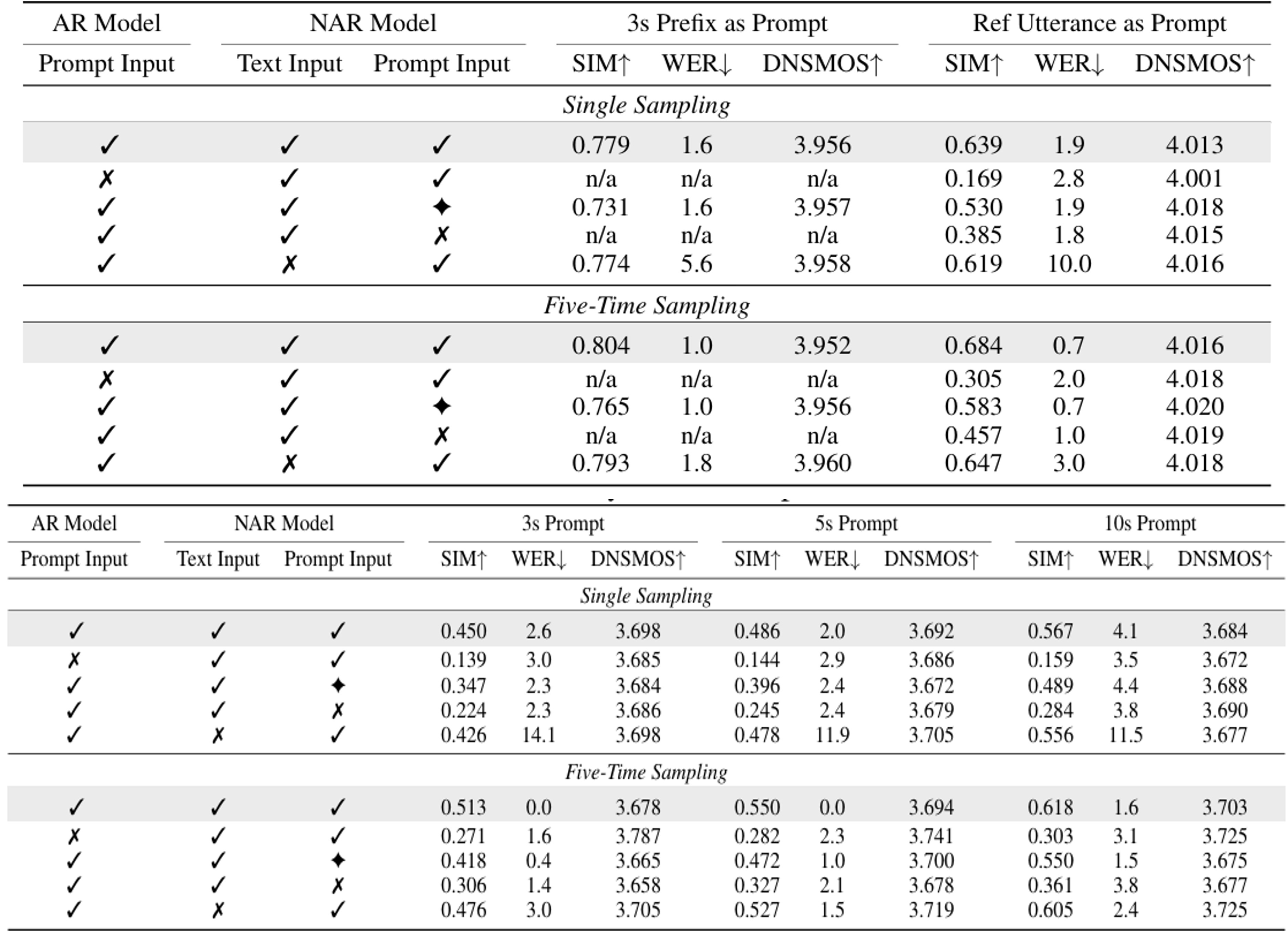 - 추론 시 VALL-E2는 prompt를 통해 zero-shot TTS를 수행함