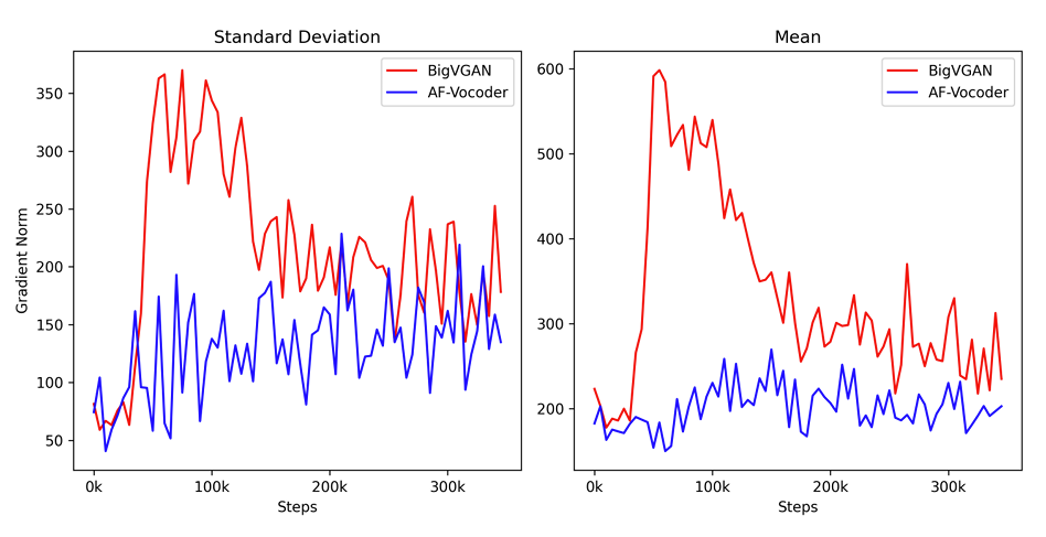 - AF-Vocoder는 더 stable 한 gradient curve를 가짐
