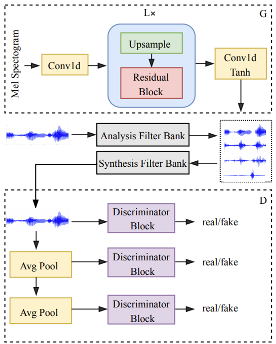 - 학습과정에서 pre-training과 결합하여 합성 품질과 안정성을 향상 - 합성 속도 향상을 위해 multi-band 처리로 확장