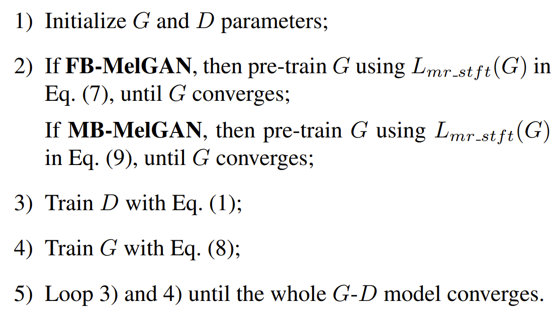- Training strategy for MB-MelGAN