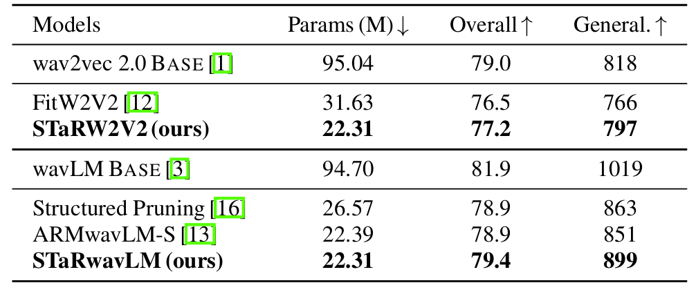 - STaR는 Wav2Vec 2.0, WavLM에도 효과적으로 적용될 수 있음