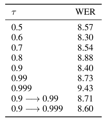 - $0.9$ 이상의 codebook decay $\tau$는 불필요함