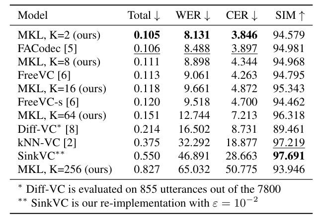 - $k$NN regression을 Monge-Kantorovich Linear solution에서 derive 된 WavLM embedding subspace 내의 factorized optimal transport map으로 replace