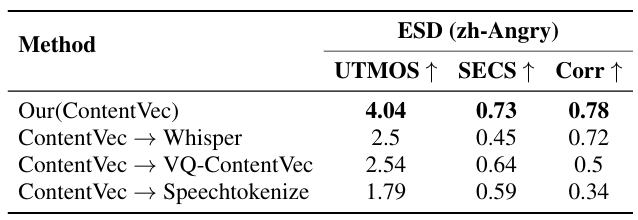 - ContentVec을 사용했을 때 최상의 성능을 달성할 수 있음