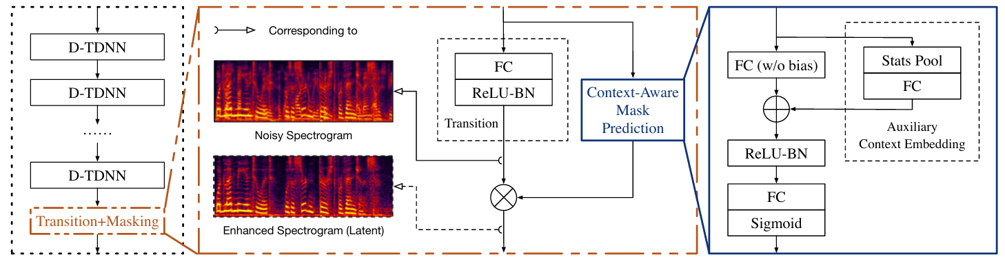 - Context-Aware Masking을 통해 interest speaker에 focus하고 unrelated noise는 blur 하는 speaker embedding network를 구성