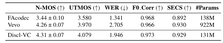 - Subjective evaluation 측면에서도 Discl-VC가 가장 뛰어남