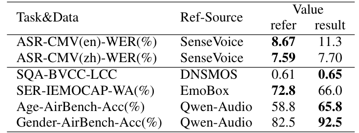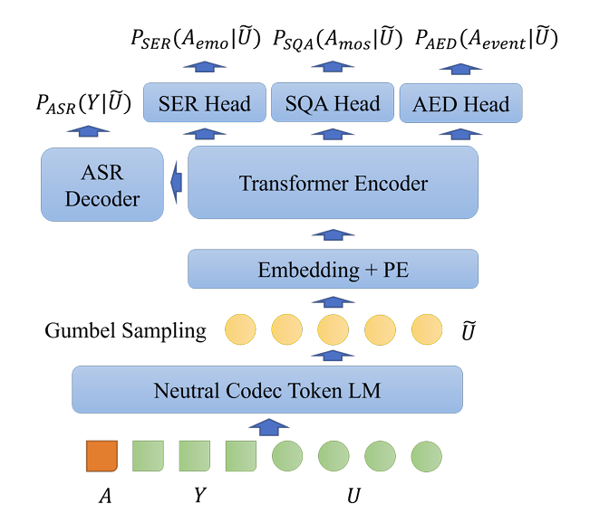 - 이를 위해 논문은 multi-task training approach를 통해 codec-based speech understanding model을 training 하여 SER, SQA, AED 등과 같은 audio task를 수행하도록 함