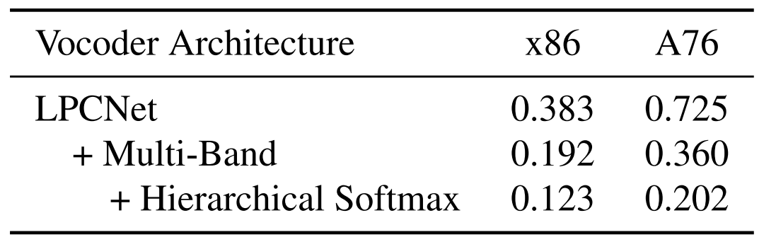 -> 따라서 LPCNet vocoder에 대한 효율성 개선을 통해 추론 속도 향상을 높일 수 있음