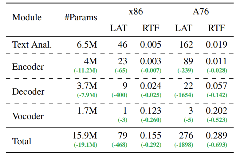 - Text-to-Speech (TTS) 모델의 추론 latency와 real-time factor (RTF)는 GPU와 같은 특수 hardware가 없는 상황에 배포하기에는 여전히 높음