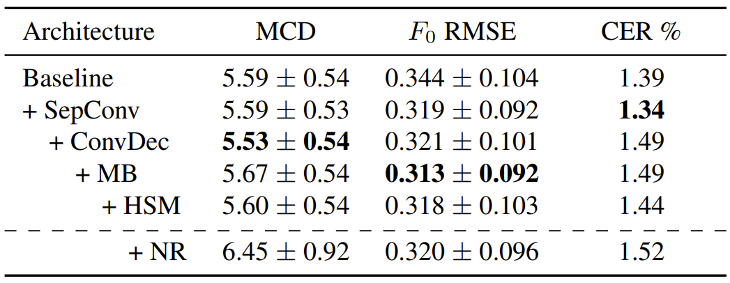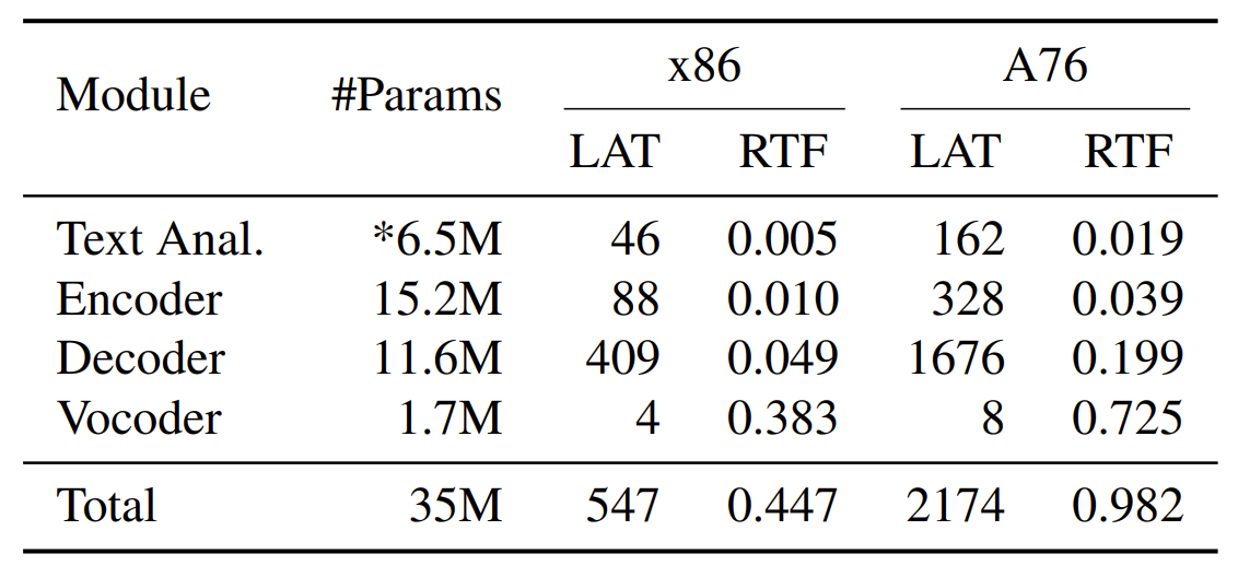 - Parameter 수 3.8배 감소, RTF 3.3배 감소 - 대체된 encoder의 경우 low character-level operationg resolution으로 인해 추가적인 최적화나 streaming은 불필요