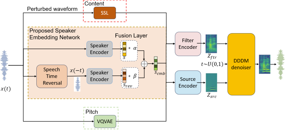 - Speaker embedding을 time-reversed speech에서 training 하고 original speaker embedding과 fusing 하여 diffusion-based decoder를 further conditioning