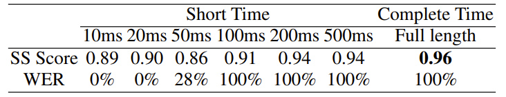 - 결과적으로 아래 그림과 같이 time-reversed speech signal에서 $80.3\%$의 accuracy로 correct spekaer를 identify 할 수 있는 것으로 나타남