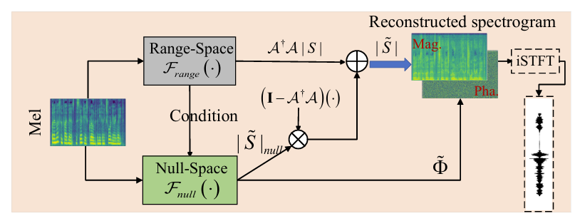 - Range-Null Decomposition과 vocoder task를 bridge 하여 target spectrogram reconstruction을 range-space와 null-space 간의 superimposition으로 decompose