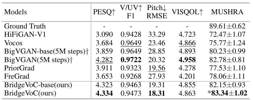 - LibriTTS dataset에 대해서도 BridgeVoC가 가장 우수한 성능을 보임