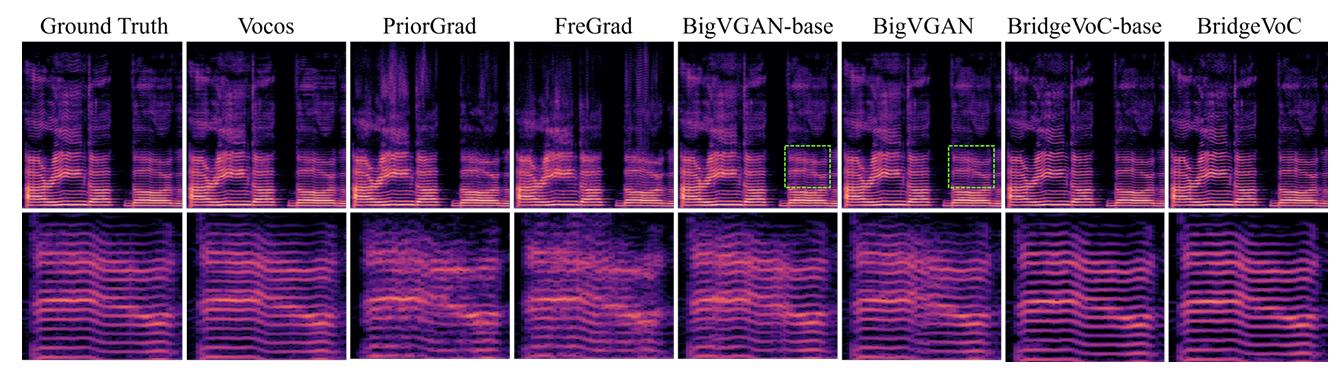 - Spectrogram 측면에서도 BridgeVoC는 harmonic detail을 효과적으로 recover 함