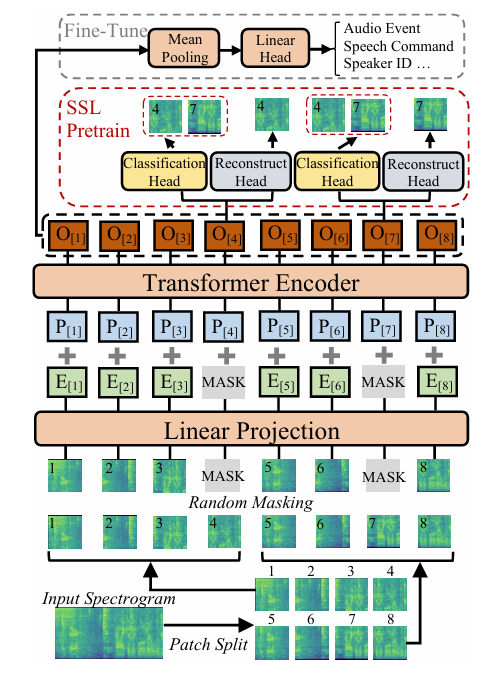 - Joint discriminative and generative Masked Spectrogram Patch Modeling (MSPM)-based SSL framework를 활용하여 기존 AST의 성능을 향상