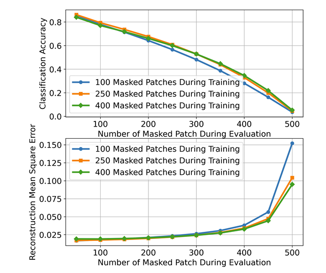 - 400 masked patch를 사용하는 경우 최고의 성능을 달성함
