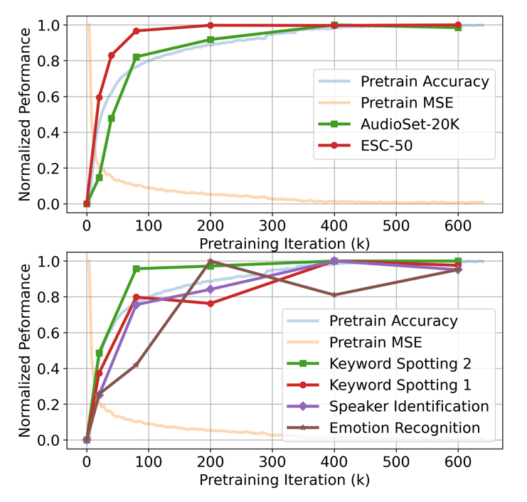 - Downstream : AudioSet, ESC, Speech Commands 2 (KS2), Speech Commands 1 (KS1), VoxCeleb, IEMOCAP - Comparisons : Wav2Vec, Wav2Vec 2.0, HuBERT