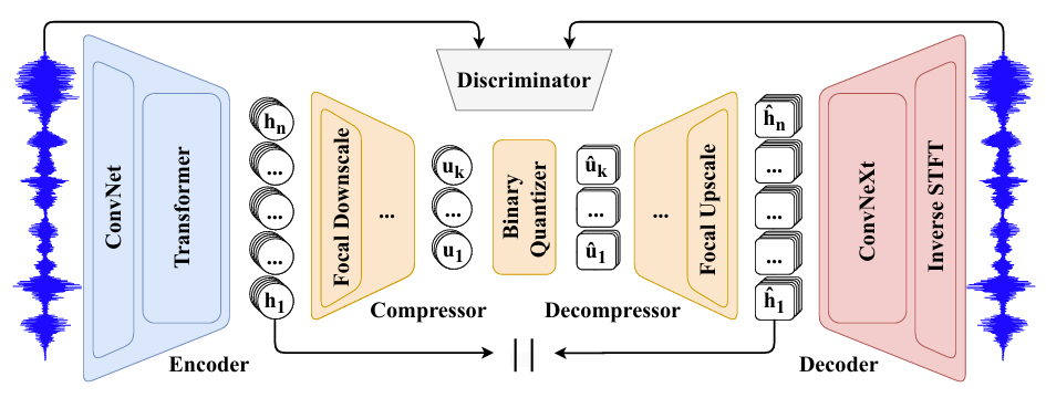 - Focal modulation을 기반으로 single binary codebook을 사용하여 speech를 compress