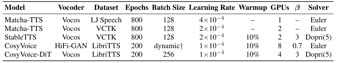 - Comparisons : Matcha-TTS, CosyVoice, StableTTS