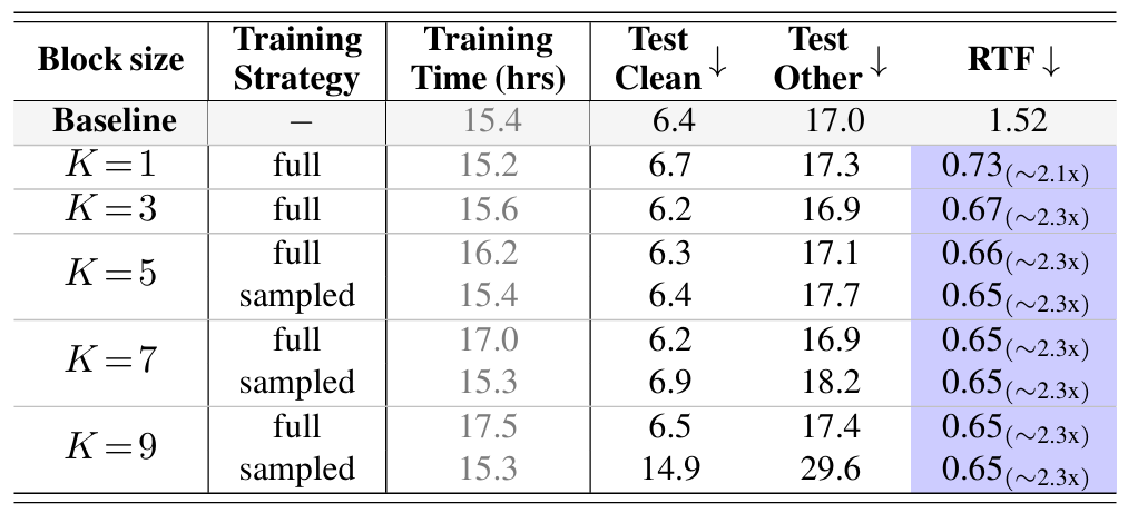 - Block Size $K$가 증가할수록 WER은 저하됨