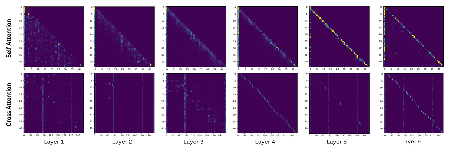 - 특히 decoder가 deeper 할수록 self-attention은 local context에 focus 하고, initial decoder layer에서는 cross-attention block이 less effective 함