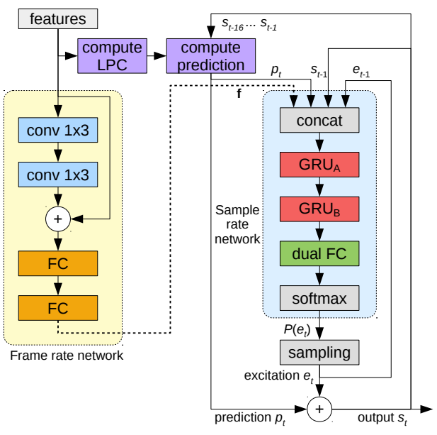 - LPCNet은 WaveRNN을 개선하여 구성됨