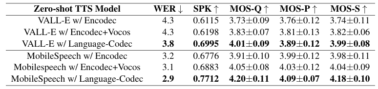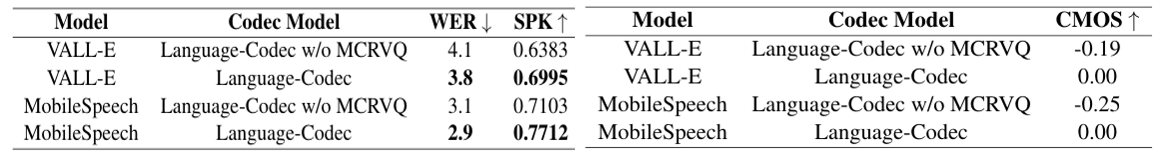 - VALL-E에 Language-Codec을 적용하면 최고의 성능을 달성할 수 있음