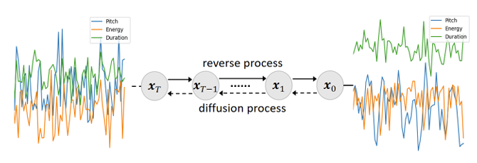 - 이를 위해 Global Style Token (GST)를 고려할 수 있지만 prosodic intensity를 control 하기 어려움 - 한편 Diff-TTS, Grad-TTS, Guided-TTS와 같은 diffusion model은 multi-step sampling을 통해 over-smoothing prediction과 diversity 문제를 해결함