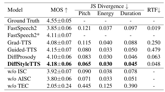 - 전체적으로 DiffStyleTTS의 성능이 가장 우수함