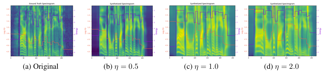 - Guiding scale $\eta$, correction scale $\gamma$를 tuning 하여 diversity와 explicit prosodic feature의 guidance intensity를 adjust 할 수 있음