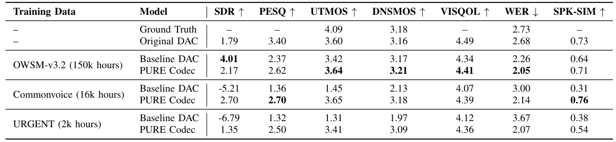 - TTS task에서도 PURE Codec을 사용하면 더 나은 결과를 얻을 수 있음