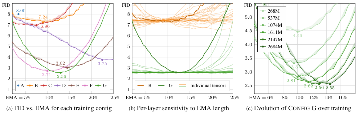- 즉, vanilla/guidance 간의 discrepancy는 non-optimal EMA parameter로 인해 발생함