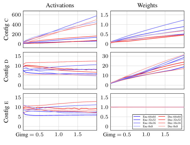 - 위 그림에서 $\texttt{Config D}$는 network weight가 grow 하는 경향이 있음