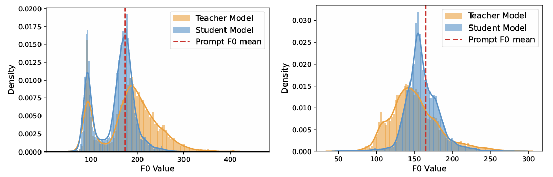 - One-step student model은 teacher model이 생성하는 acoustic detail을 capture 할 computational capacity가 부족하므로 noticeable artifact가 발생할 수 있음