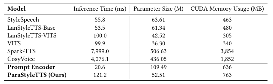 - ParaStyleTTS는 763MB의 GPU memory를 사용함