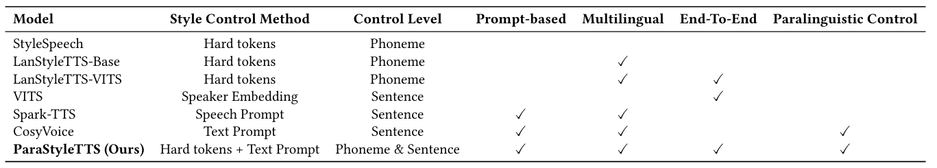 -> 그래서 lightweight, controllable paralinguistic modeling을 지원하는 ParaStyleTTS를 제안