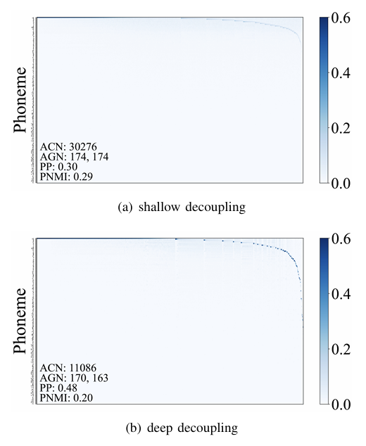 - 특히 speaker 수와 language 수의 차이를 활용하여 clustering result를 language와 close 하게 만듦 - 해당 shallow decoupling은 labeled data 없이 layer position, cluster center 수, pooling 여부 만으로 speech representation의 content를 specify 하는 것을 목표로 함