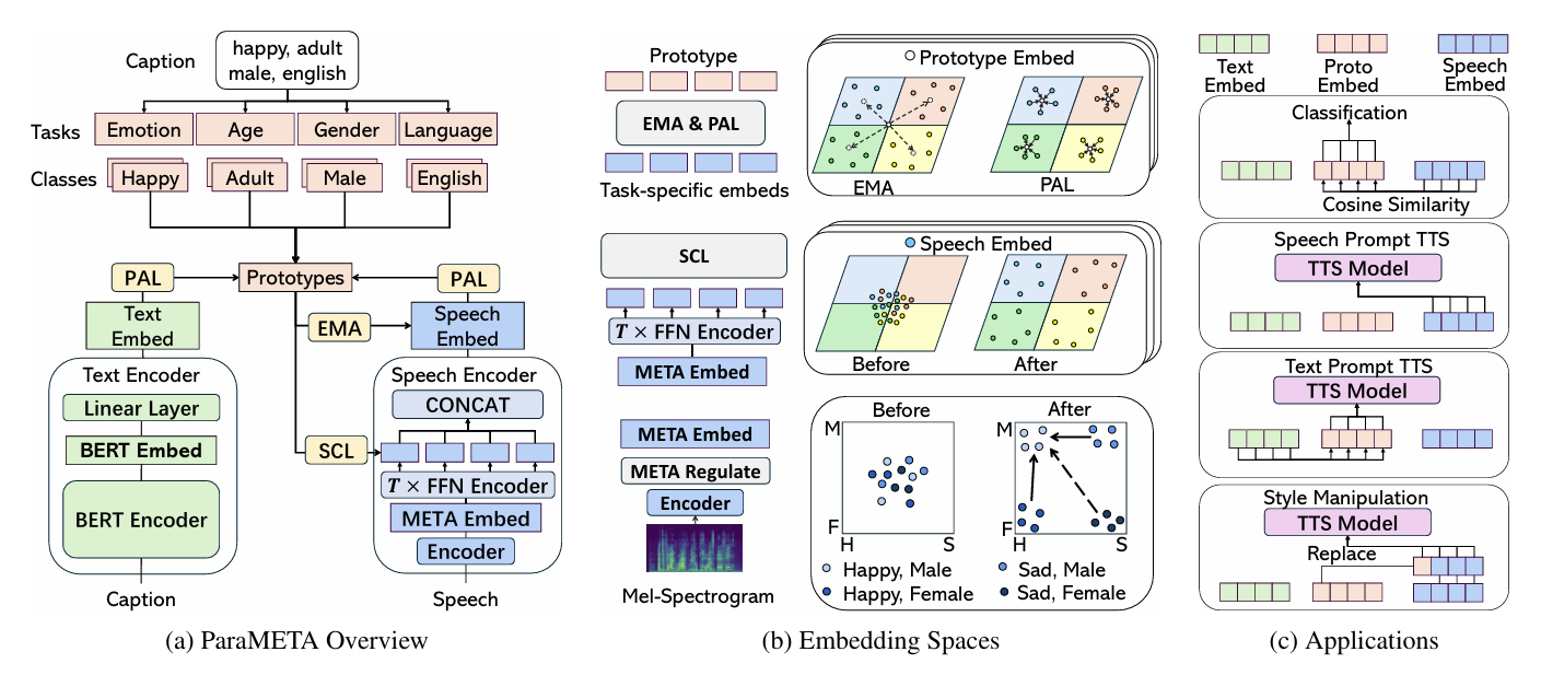 - ParaMETA framework는 disentangled, task-specific paralinguistic embedding을 활용하여 다양한 downstream task에 활용될 수 있음