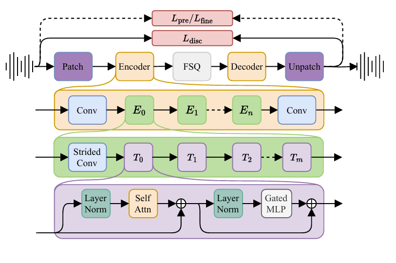 - Transformer와 FSQ를 활용하여 scaling된 neural codec