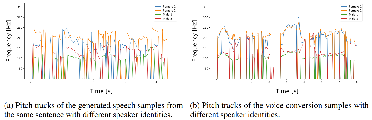 -> Converted sample은 유사한 trend를 유지하면서 서로 다른 pitch level을 가짐