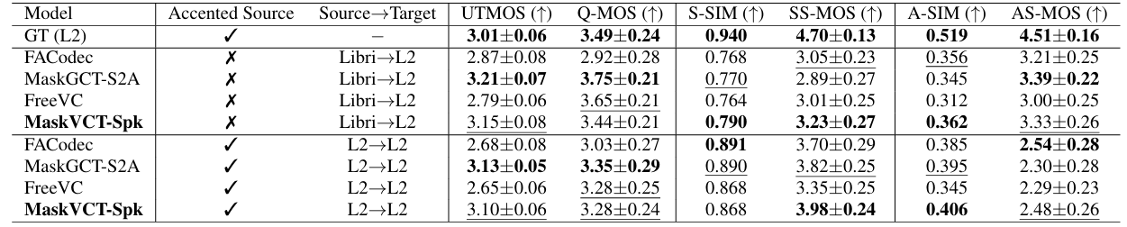- Accent conversion 측면에서도 우수한 성능을 달성함
