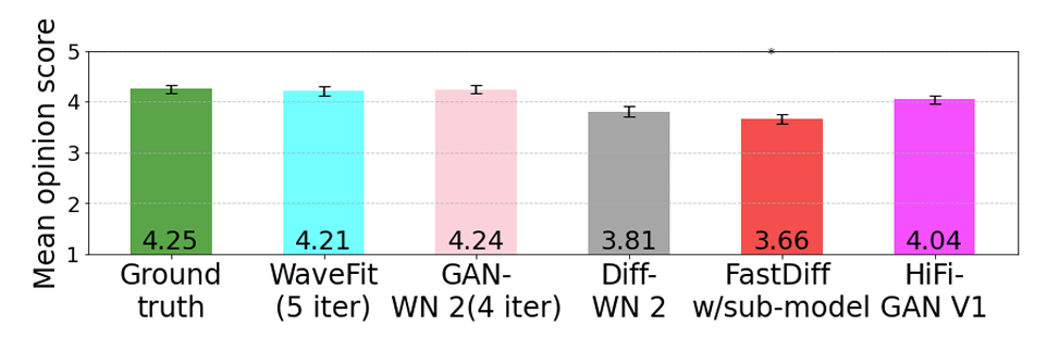 - MOS 측면에서도 우수한 성능을 보임