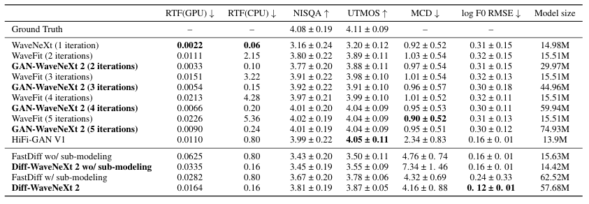 [Paper 리뷰] WaveNeXt2: ConvNeXt-based Fast Neural Vocoders with Residual Denoising and Sub-Modeling for GAN and Diffusion Models